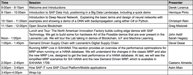 Last call for SAP Inside Track NYC registrations is happening now. Tickets are almost sold out and we’re expecting a great crowd for the return of SAP Inside Track to New York City! We’ve also added a session on Neural Networks to the agenda and made lunch ‘interactive’ by moving the SAP Leonardo Center tour and demo to happen during lunch.